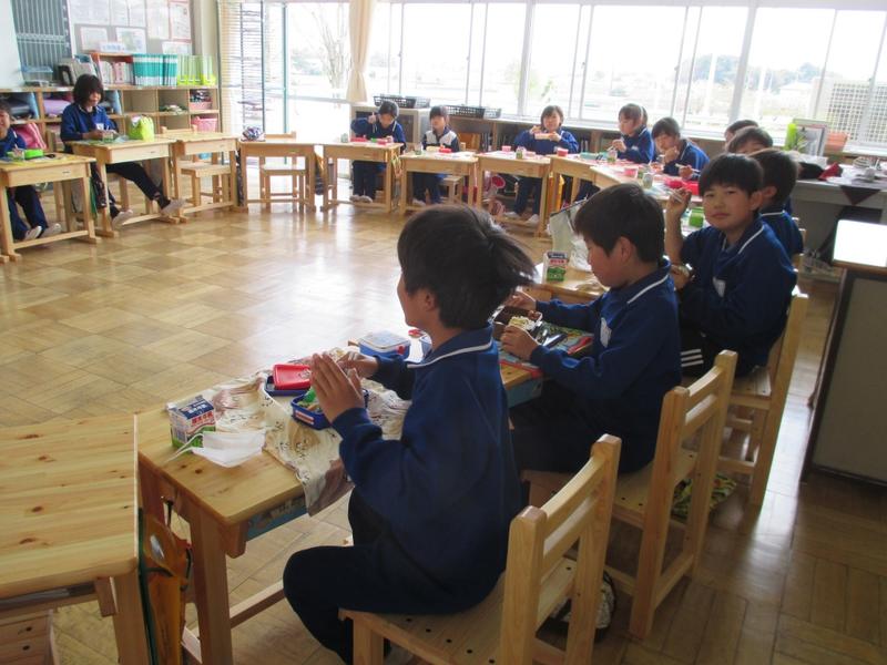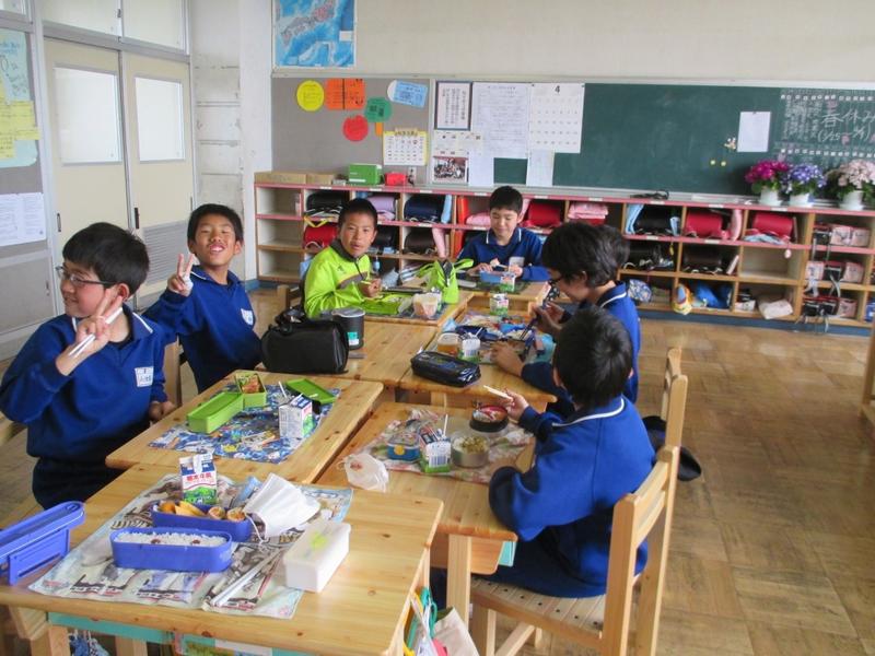 3~6年生は、学力テストを実施しました。真剣に取り組んで疲れたようですが、お弁当をおいしくいただきました。