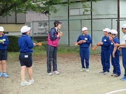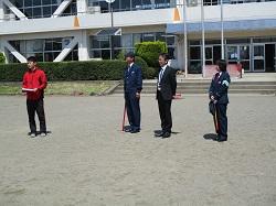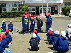 交通少年団入団式・交通安全教室が行われました。安全安心課の仁平さんや飯貝駐在所の山中さん、