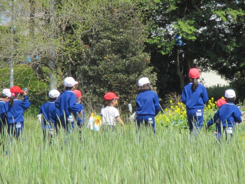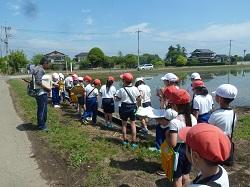 2年生が生活科見学で、根本山に行きました。池にいるヤゴやおたまじゃくしの観察や、植物を