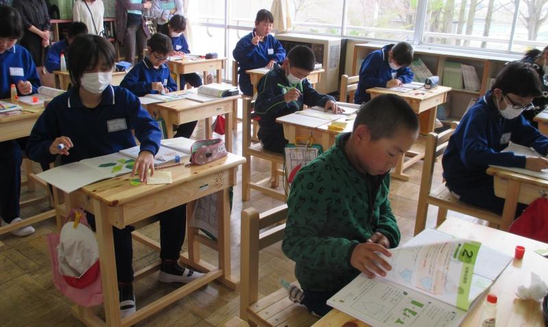 「森を育む人づくり事業」により3年生から6年生の机とイスがあたらしくなりました。