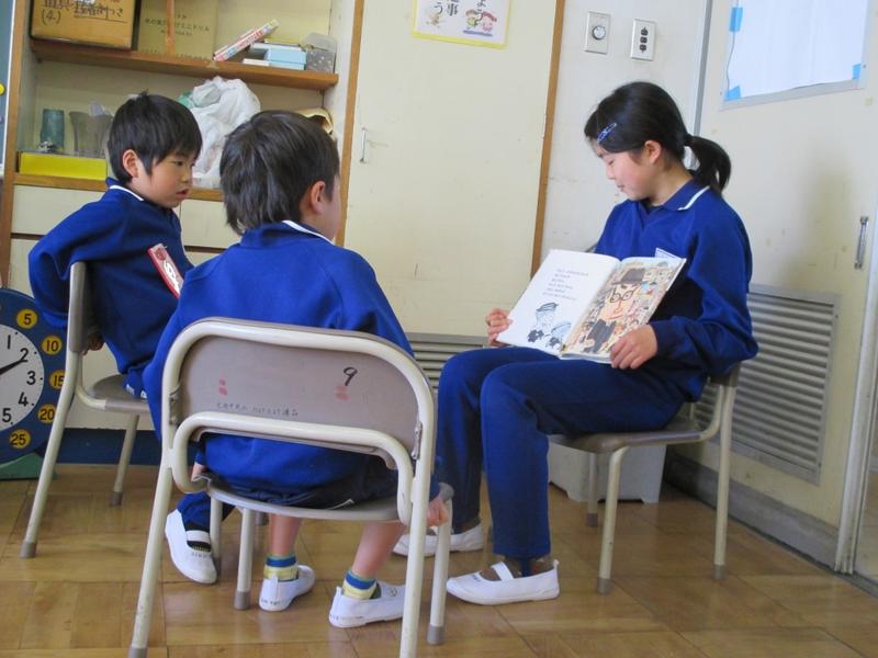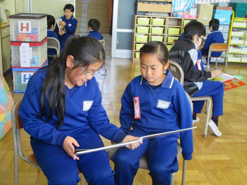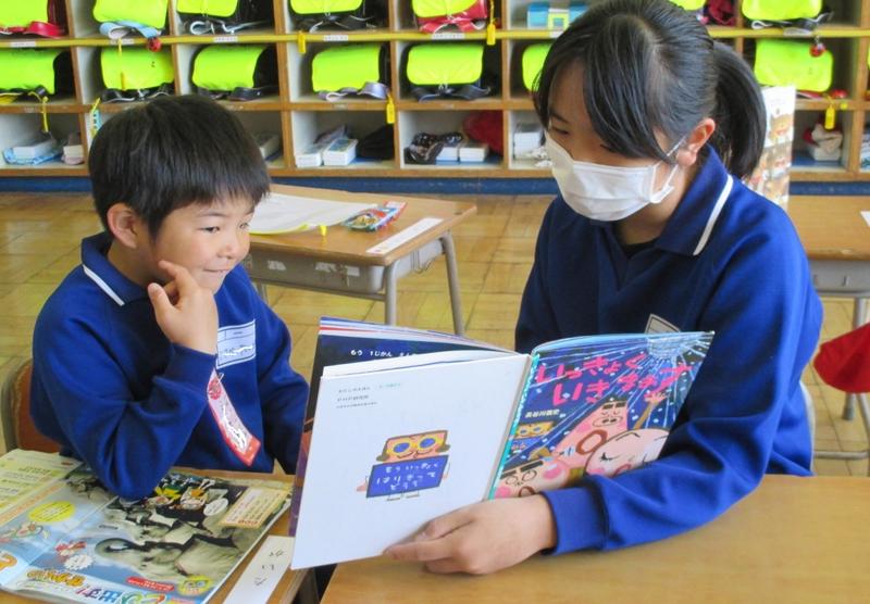 6年生が絵本を選び音読を練習して、1年生に読み聞かせをしました。1年生からは「うれしかった。」「楽しくてあっという間に終わった。」といった感想がありました。6年生は絵を見せながら、やさしく語りかけるように読み聞かせていました。