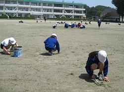 クリーン活動では、全校生徒で花壇や校庭の草むしりを行いました。鎌を使って校庭に生えている雑草をきれいに取ることができました。
