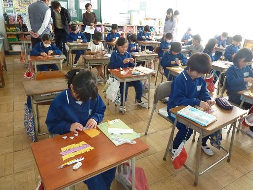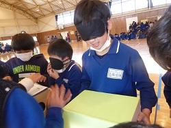 4年生は総合的な学習の時間に福祉をテーマに学習しています。社会福祉協議会の方に数回にわたりご指導いただきました。今回は、アイマスク体験を行いました。児童からは「アイマスクをして歩くのは怖かった。」「具体的な指示をするのが難しかった。」「二人の信頼関係が大切。」などの振り返りがありました。社会福祉協議会の方から、「相手を気遣っている様子が伝わってきてすばらしかった。」とお褒めの言葉をいただきました。