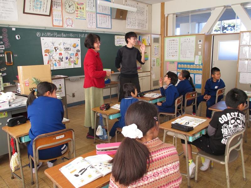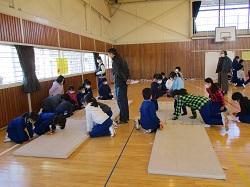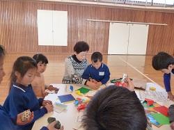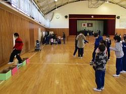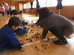 1年生が体育館で、生活科の昔遊びを行いました。竹とんぼや、お手玉、だるま落としなどの遊びを、ボランティアできてくださった祖父母の皆様と楽しく活動できました。