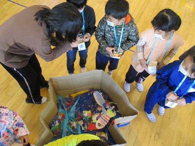 1年生とにしだ幼稚園の園児を招待し「おもちゃらんど」を開催しました。輪投げや的当て、空気砲などいろいろなゲーム楽しむことができました。