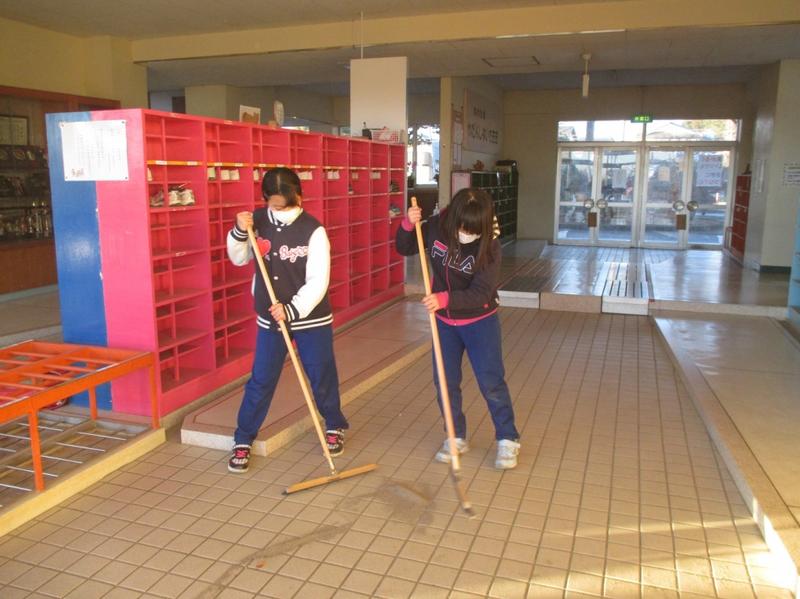 大掃除の時間に、下駄箱をきれいに拭き掃除しました。教室を掃除している友達の分まで頑張りました。みんな集中したいい目をして働いていました。