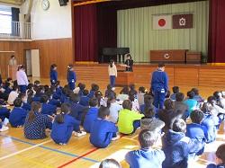 学級委員任命式では、各学年の新しい学級委員が校長先生から任命されました。最後に、全校生で「ありがとうの花」を合唱しました。