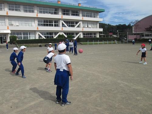 業間の時間に縦割り班遊びが行われました。1年生から6年生が10班に分かれ、鬼ごっこやドッヂボールを仲良く行いました。6年生のリードで、コートかき、チーム分けなど、スムーズにできました。天気も良く、子どもたちはとても気持ちよさそうに活動していました。