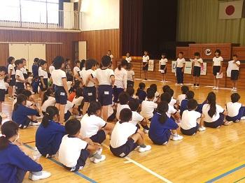 はっぴー集会では、虫歯がなく、歯の状態がとても良い児童が名前を呼ばれ、全校生徒に紹介されました。その後、健康委員会によるクイズ大会が行われ、楽しみながら、歯に関する知識を学ぶことができました。