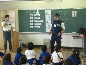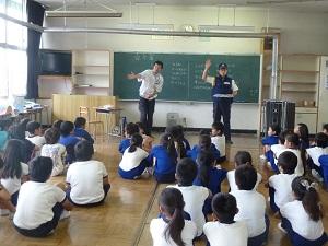 防犯教室では、低学年で「安心して登下校」、中学年では、