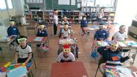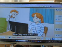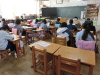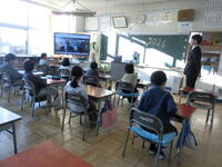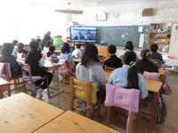 始業式の児童たちの様子です。始業式は、リモートで行いました。