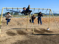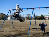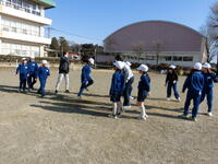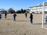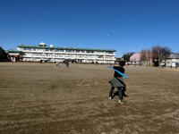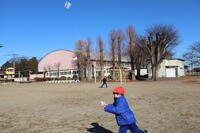 冬の太陽の下、今日も児童たちは元気に遊んでいました。サッカー、ブランコ、ジャングルジム、築山からの芝すべりに加え、3学期になって野球で遊ぶ姿が見られます。