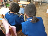 お気に入りの本を見つけて、読書スタートです。図鑑、絵本、小説など、児童たちは思い思いの読書に耽っていました。