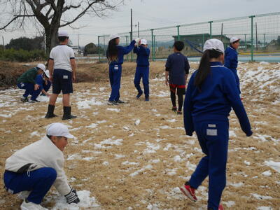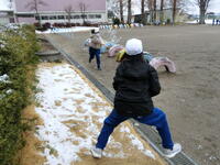 休み時間に引き続き、残った雪で元気に遊ぶ姿が見られました。