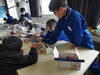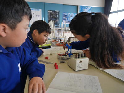 5年生の理科の「電流と電磁石」の学習では、電磁石を強くするにはどうすればよいかを調べました。今回の学習では、コイルの巻き数を変えて実験をしました。コイルの巻き数を多くすると電磁石は強くなることに気付き、電磁石が引き付けたくぎの数を調べる活動を楽しんで行っていました。