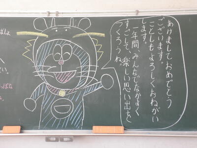 恒例の担任による黒板アートは、今年も個性溢れる作品が並びました。
