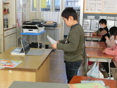始業式は、校長からの話や児童代表による作文発表、3学期学級委員の任命などを行いました。