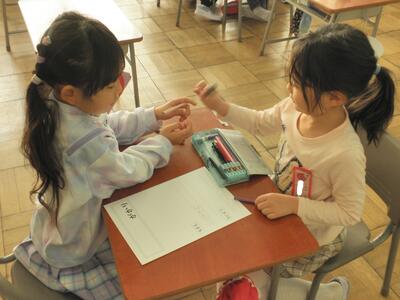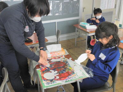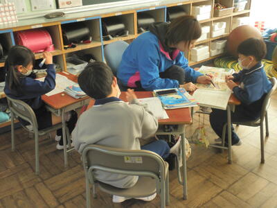 自分の作業が終わった児童は、お友達のお手伝いです。
