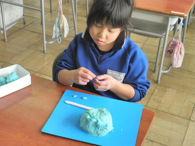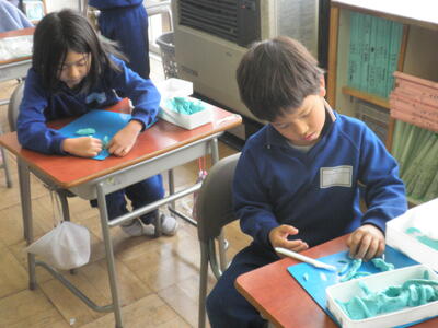 すでに終わってしまった児童は静かに粘土遊びです。