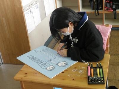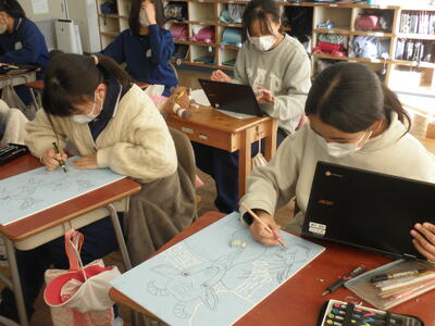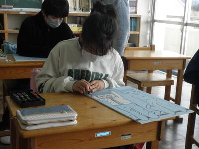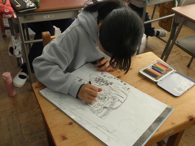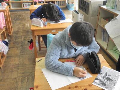 そして5年生。いよいよ版画の下絵書きが始まりました。