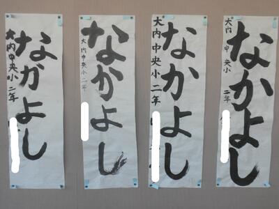 1・2年生もお習字に挑戦し、がんばりました。