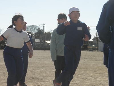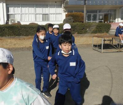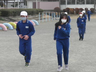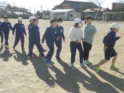 3学期の運動集会は音楽に合わせて5分間走を行います。