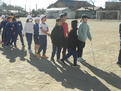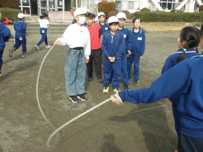 4年生は全員で、大縄跳びの練習をしていました。