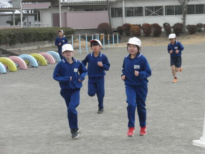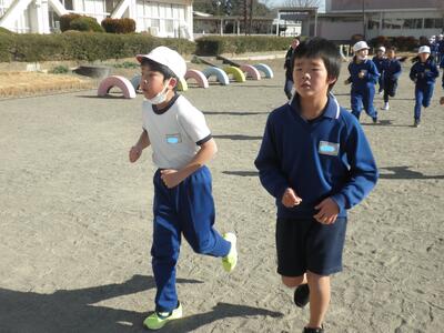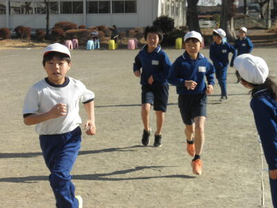そして最後は、業間の時間の5分間走をがんばる4年生たちです。