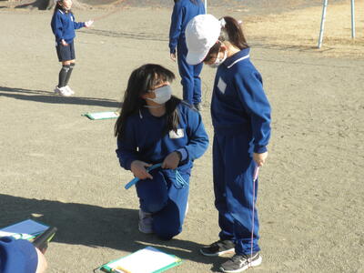 6年生は1年生を、5年生は2年生を面倒見ながら、なわとび検定を行っていました。