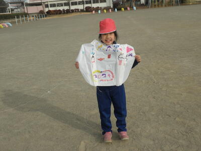 生活科の時間に作った凧が完成し、校庭で凧揚げをしました。