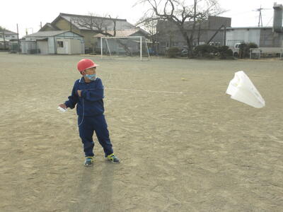 まずは昨日のホームページにアップできなかった、1年生の凧揚げの様子をお伝えしたいと思います。