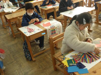 さて、今日は1年生と5年生の図工の様子をお伝えしたいと思います。