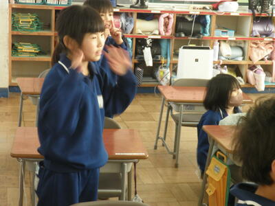 テンポが徐々に早くなっていくので最初はついていくのにやっとでしたが、さすが2年生、数回の練習で音楽に合わせて上手に踊っています。