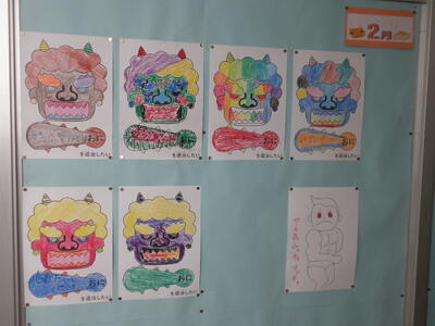 廊下の壁には子どもたちの力作が並んでいます。