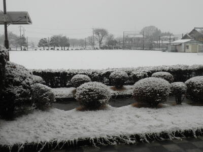 お昼前から降り始めた雪があっという間に積もり、校庭は一面冬景色です。