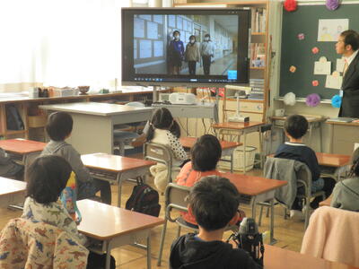来年度入学する児童たちが、4年生が作成した動画を鑑賞したり絵を描いたりして過ごしました。