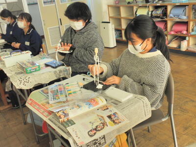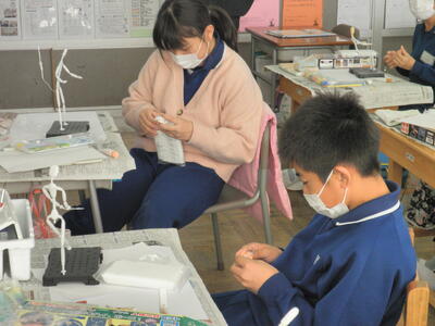 中学校の先生方を交え和気あいあいとした雰囲気の中で、子どもたちは作品作りをしていました。