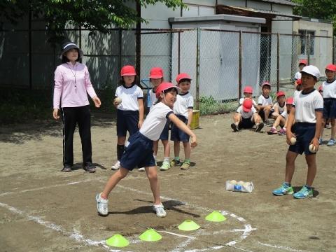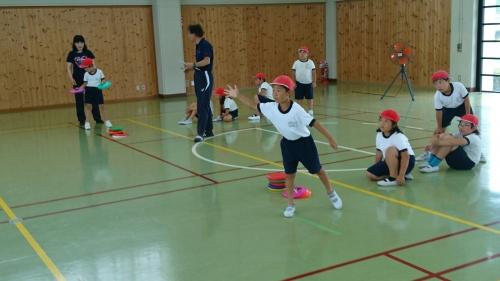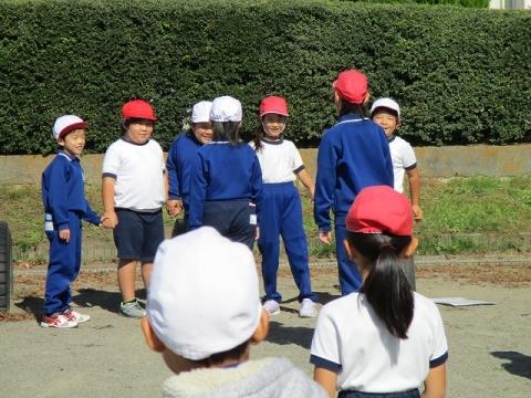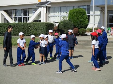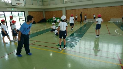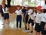 2校時から3校時にかけて体力テストが行われました。1年生は初めてなので6年生が、2年生には5年生が補助に入りました。