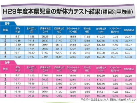 昨年度の栃木県の平均をお渡ししました。お子さんの成績と比べ、体力の向上にお役立てください。