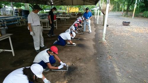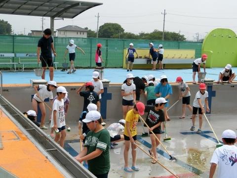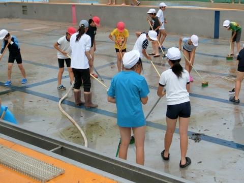 4・5・6年生が5・6校時にプール清掃をしてくれました。プールの中には落葉がたくさん入っていました。はじめ床や側面はヌルヌルしましたが、みんなが一生懸命磨いてくれたのでピカピカになりました。