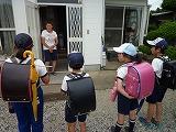 児童がこども110番の家に訪問し、不審人物や天候の悪化の際に避難させてもらうために一軒一軒あいさつに伺いました。