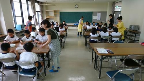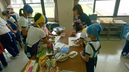 5年生が家庭科の「野菜をゆでておいしく食べよう」の学習で調理実習を行いました。各班で計画を立てて、ゆで野菜サラダを作りました。友達と協力しながら、おいしいゆで野菜サラダを作ることができました。