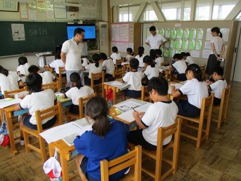 暑さも少し和らぎ、学習にちょうどよい季節になりました。1年生は「かんじのはなし」・2年生は漢字の学習を、3年生は「大きな数を数直線をつかって」、6年生は「資料を生かして呼びかけよう」の学習をしました。