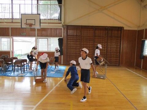縦割り班ごとにあっち向いてほい、フラフープリレー、仲良しじゅうたん、ハードルボーリング、出せ出せさいころ大きな目、空き缶積み、さら返しを行い、楽しみました。