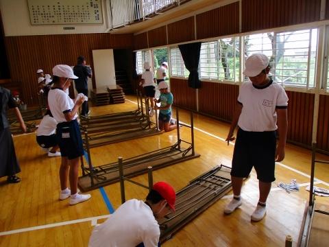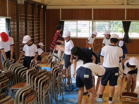 業間の時間に、5・6年生が運動会の片付けをしてくれました。イスや机についた校庭の砂をきれいに拭き取り、次の行事のためにきちんと片付けてくれました。