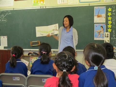 1年生が生活科「いきものとなかよし」で獣医師さんを招いて授業をしました。ウサギに食べさせてよい草、よくない草、生活の様子、心臓の鼓動など専門的な立場からお話しいただきました。