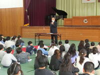 2~6年生は温かい拍手で1年生を迎えてくれました。たくさんのお兄さん、お姉さんの前で自分の名前や好きなものの発表をしました。1年生たちは少し緊張している様子でしたが、はっきりと発表することができました。