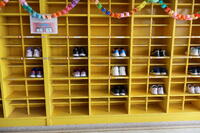 また、1年生は2時間目にくつ箱の使い方の勉強をしました。お話をよく聞いて、すばやく行動してくれました。