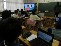 今日の5年生の外国語は、2学期のまとめでした。学習端末を利用して問題に答えることで、しっかりと復習することができました。少し前までは、中学校に入学してから学習していたような内容を、今は5年生が学習しています。