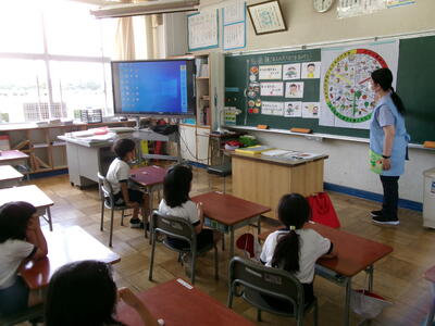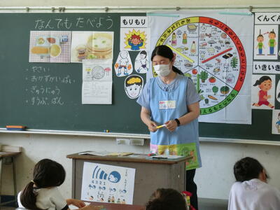 昨日は真岡市の栄養教諭の先生が来校し、1・2年生の食育の授業を行ってくださいました。